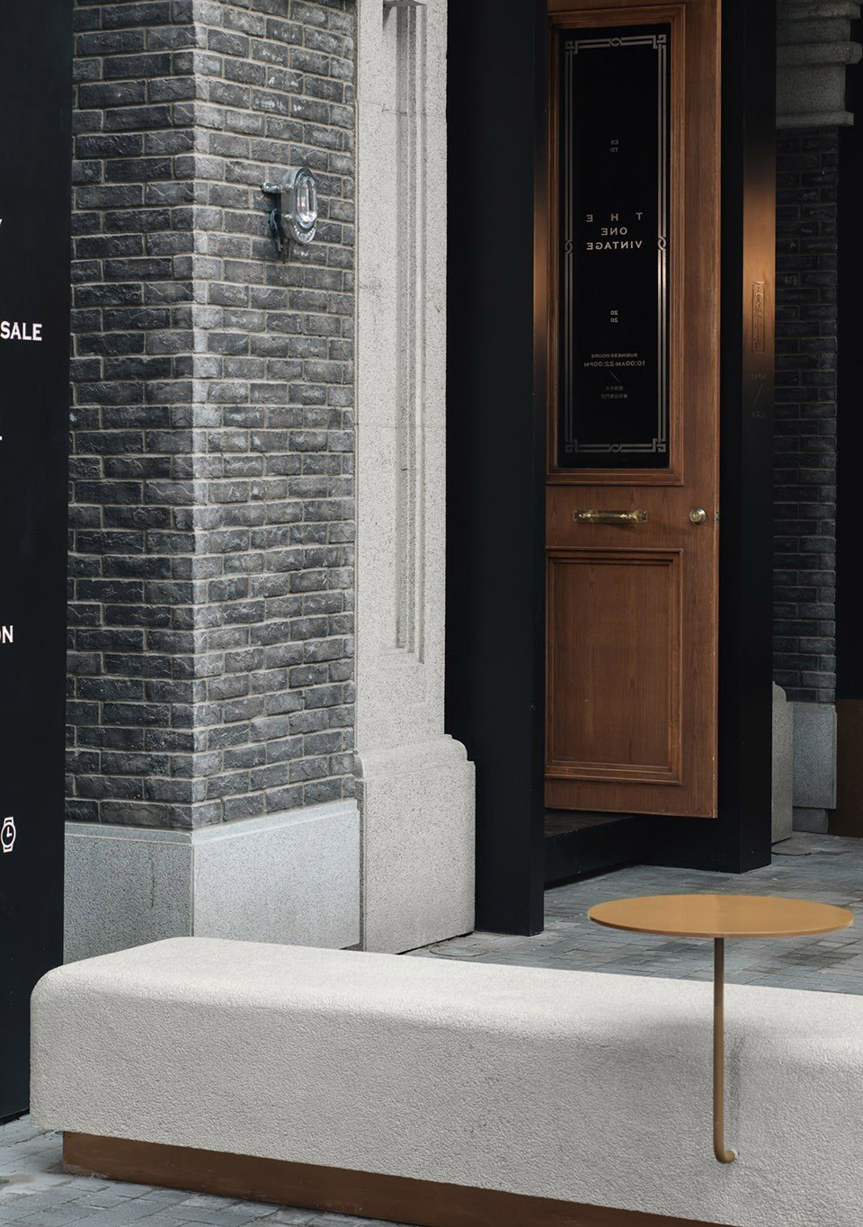 作為初創(chuàng)品牌的「壹臻」,其首家門店位于重慶市南岸區(qū)彈子石老街,是一棟仿民國(guó)式的獨(dú)立建筑。其物業(yè)本身,具有較強(qiáng)的年代感,這無(wú)疑是為該中古門店的視覺(jué)呈現(xiàn),創(chuàng)造了一定的基礎(chǔ)條件。但也正是因?yàn)槠渫怀龅拿駠?guó)建筑形象,又為我們力求創(chuàng)新的空間設(shè)計(jì),造成了不小的物理環(huán)境障礙。再加上山城特有的地理因素,該物業(yè)背靠山體,面朝高墻,且商業(yè)環(huán)境的主交通流線并未與該物業(yè)產(chǎn)生直接的關(guān)聯(lián),甚至在主通道上,我們只能側(cè)視其建筑的一角……這都成為了在設(shè)計(jì)之初我們所面臨的挑戰(zhàn)。于是,如何讓過(guò)往的游客能關(guān)注到「壹臻」,并吸引他們進(jìn)入商店,將是我們首先要解決的問(wèn)題。