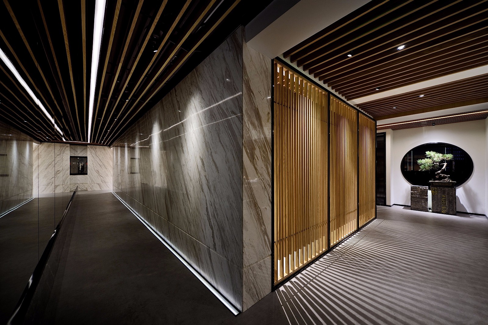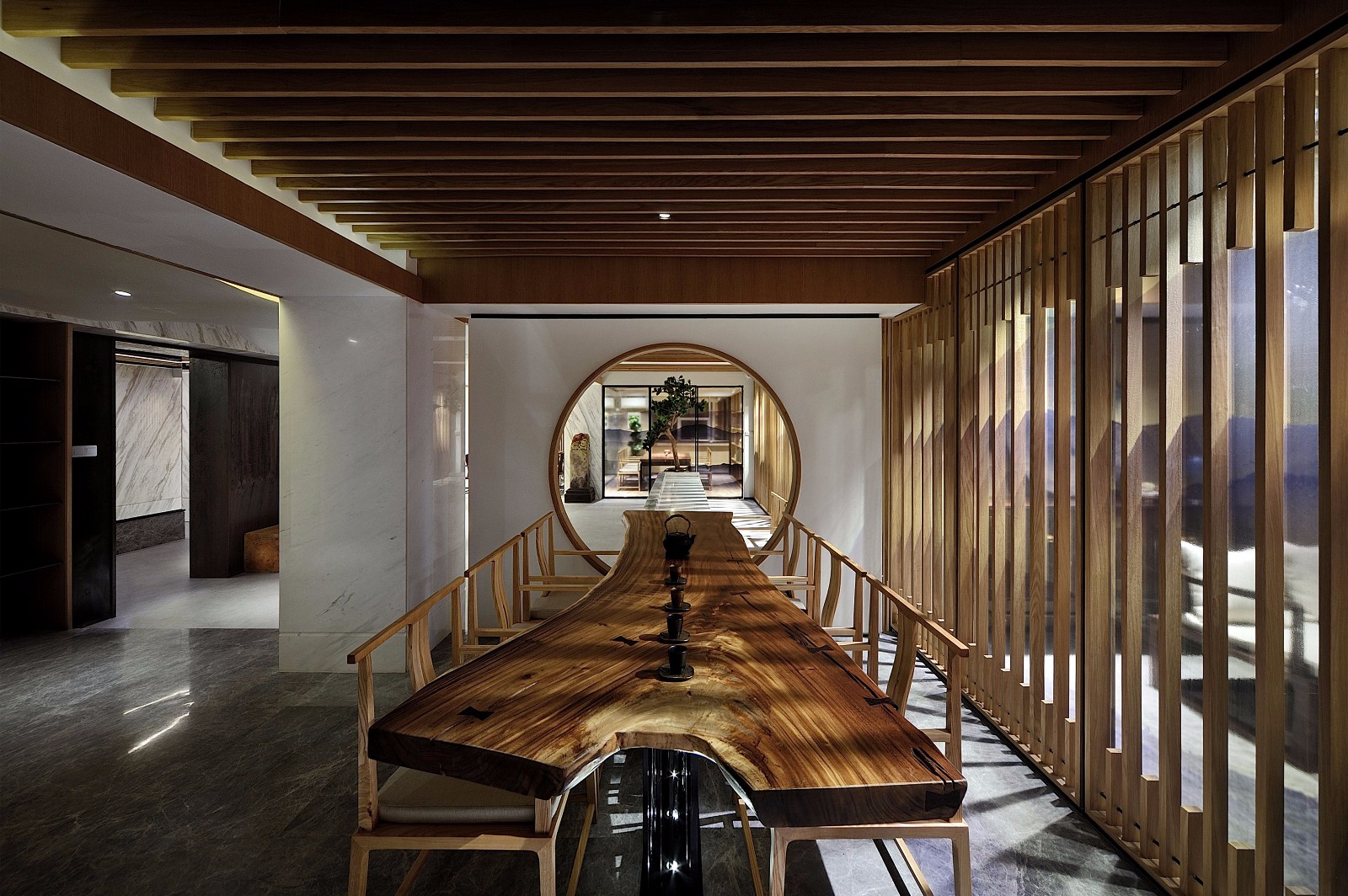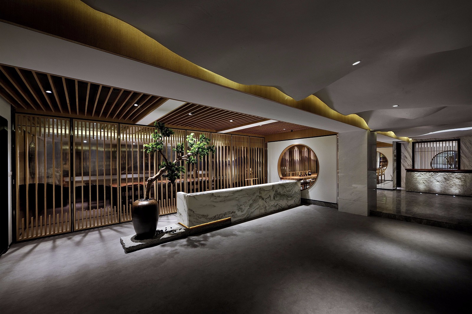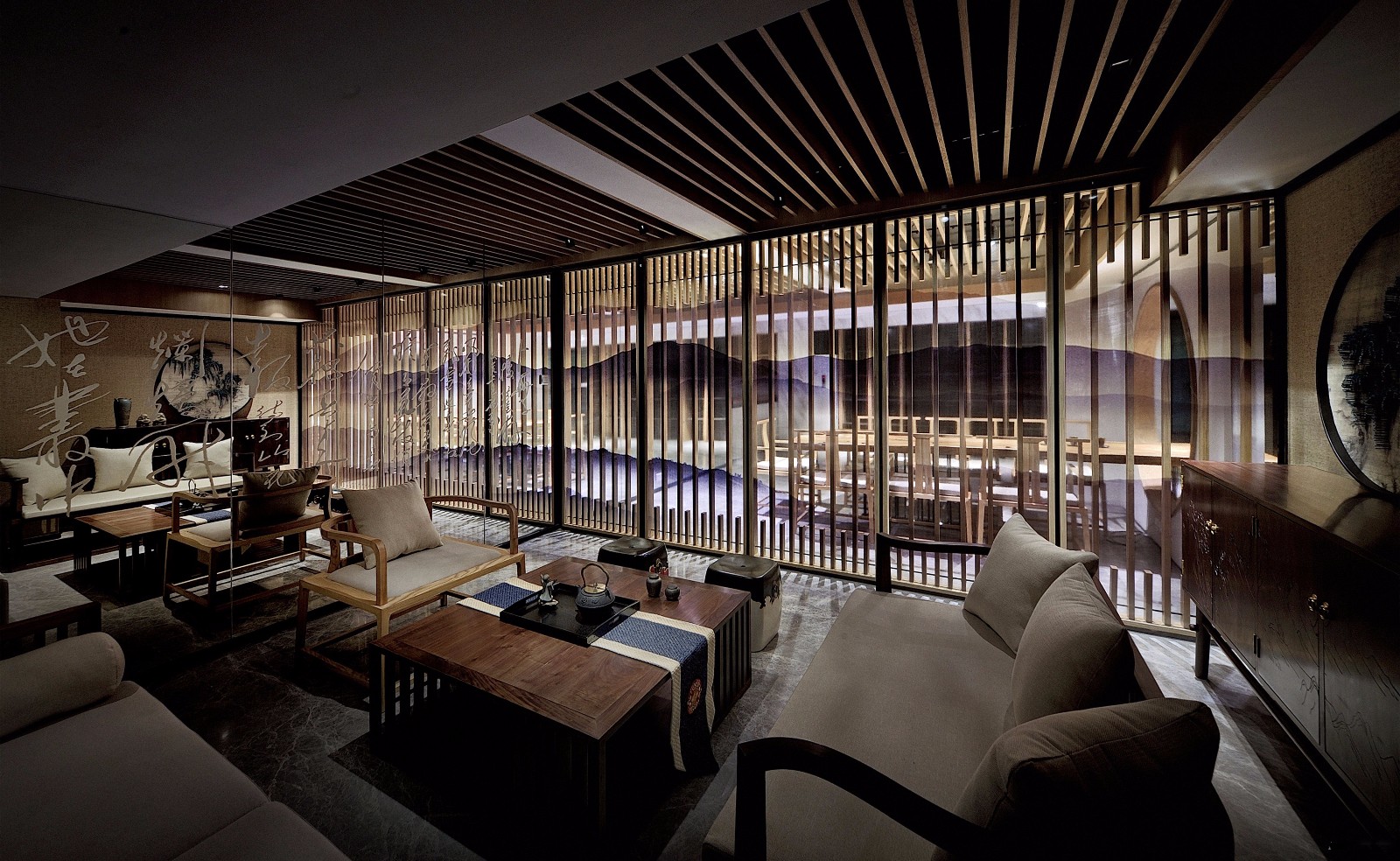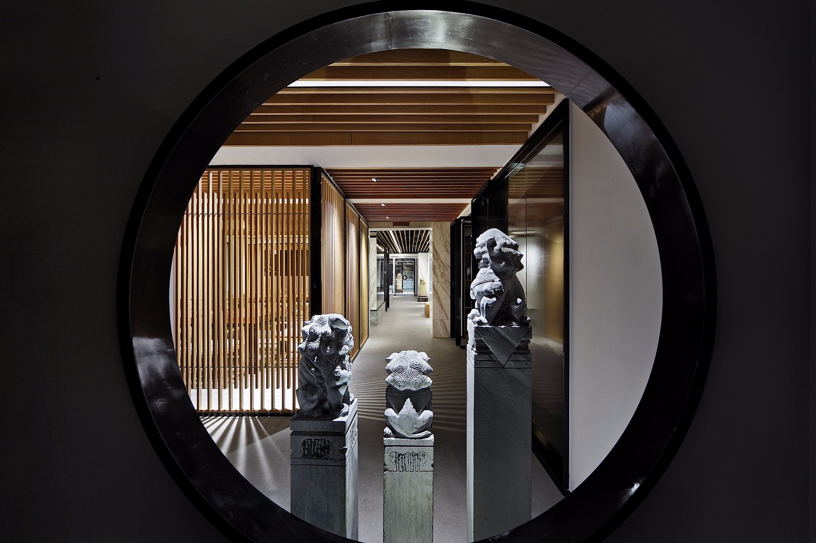 設(shè)計師將中式庭院的元素景觀效果轉(zhuǎn)移到室內(nèi)中,注重室內(nèi)與園林的對話,做到移步換景,形成親近自然、親切、多元內(nèi)涵的豐富空間。設(shè)計師賦予空間的便是這樣一種使身心都得到文化藝術(shù)陶冶的名門雅士的生活方式。